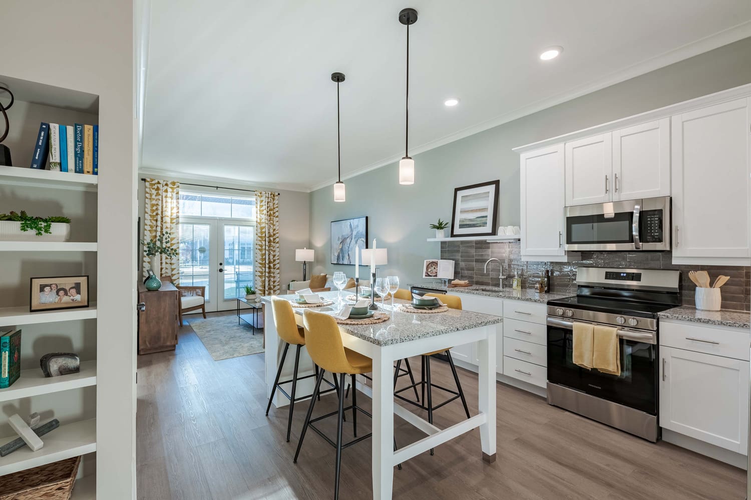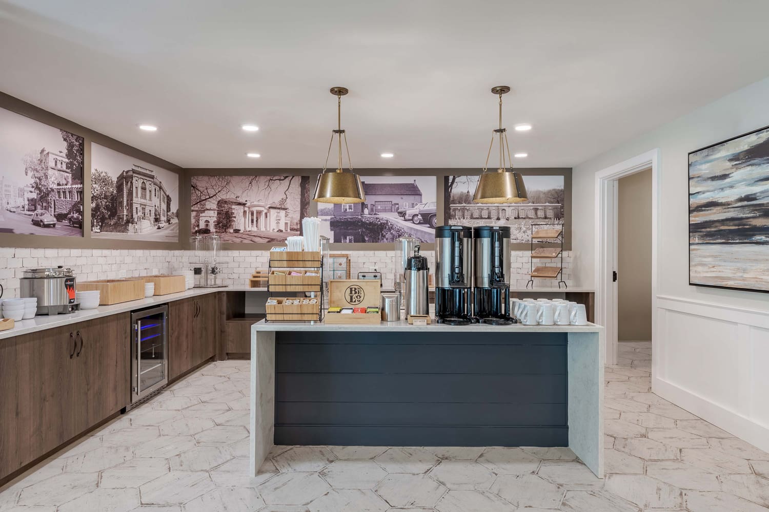 Designed in a modern farmhouse aesthetic, the four-story building maximizes indoor-outdoor connections, an open-concept design, and natural light to create a comfortable home-like environment.