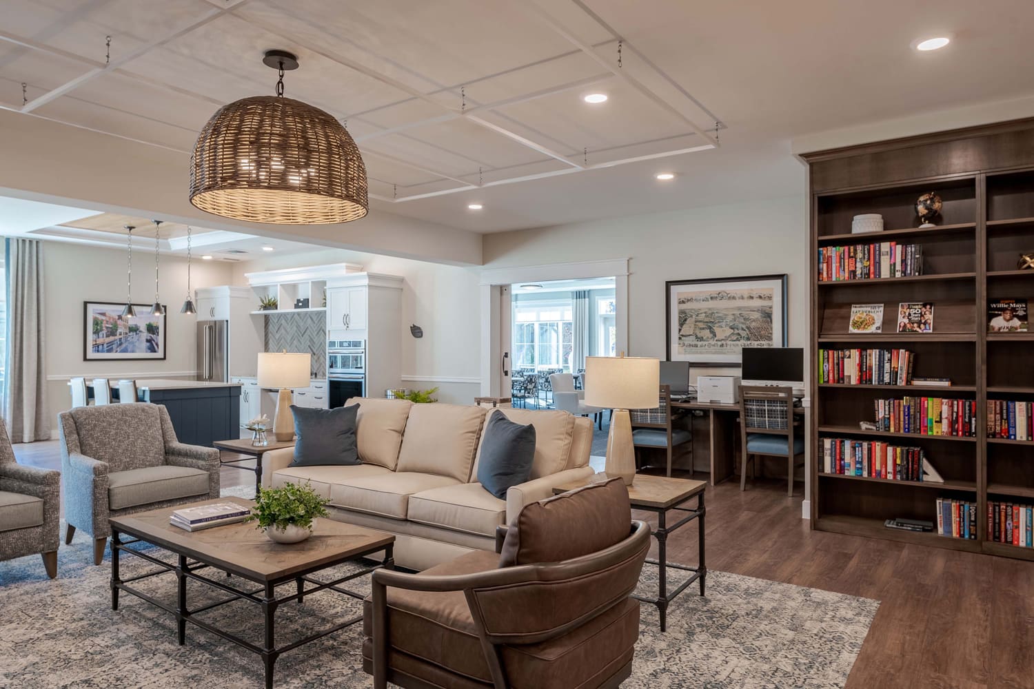Amenities include community gathering spaces, multiple dining options, a fitness center, and an art studio, and many tranquil gardens and courtyards.