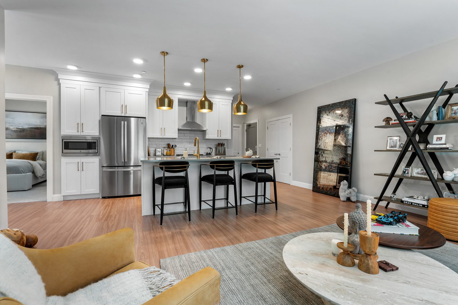 Residents enjoy private secure parking, community meeting space, an outdoor courtyard, an executive fitness center, and a private rooftop terrace. Private deck space is available in some residential units.