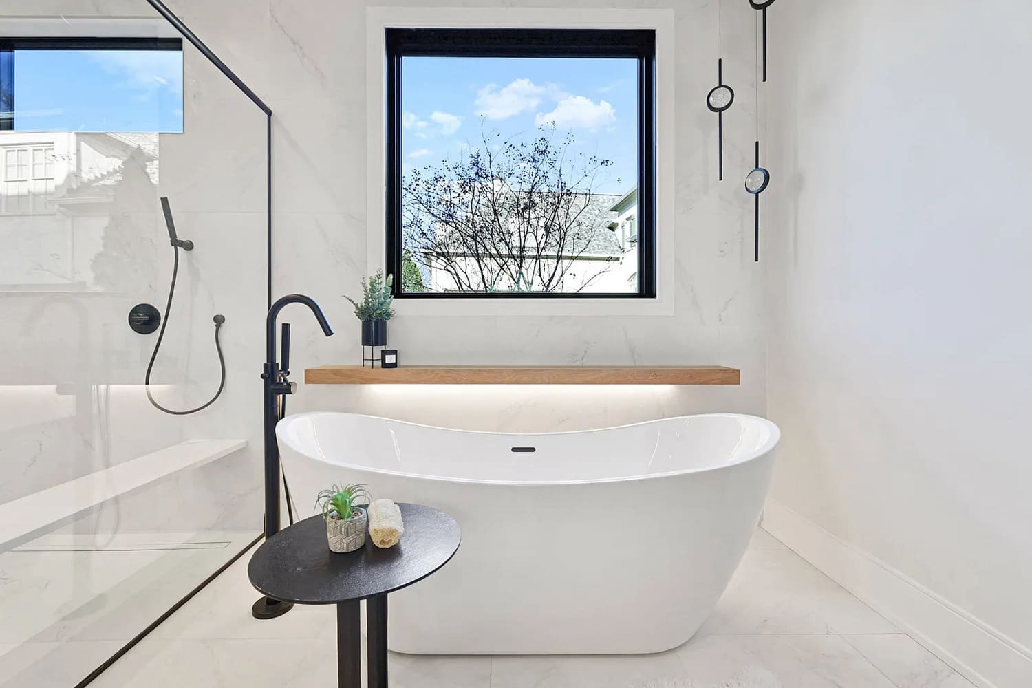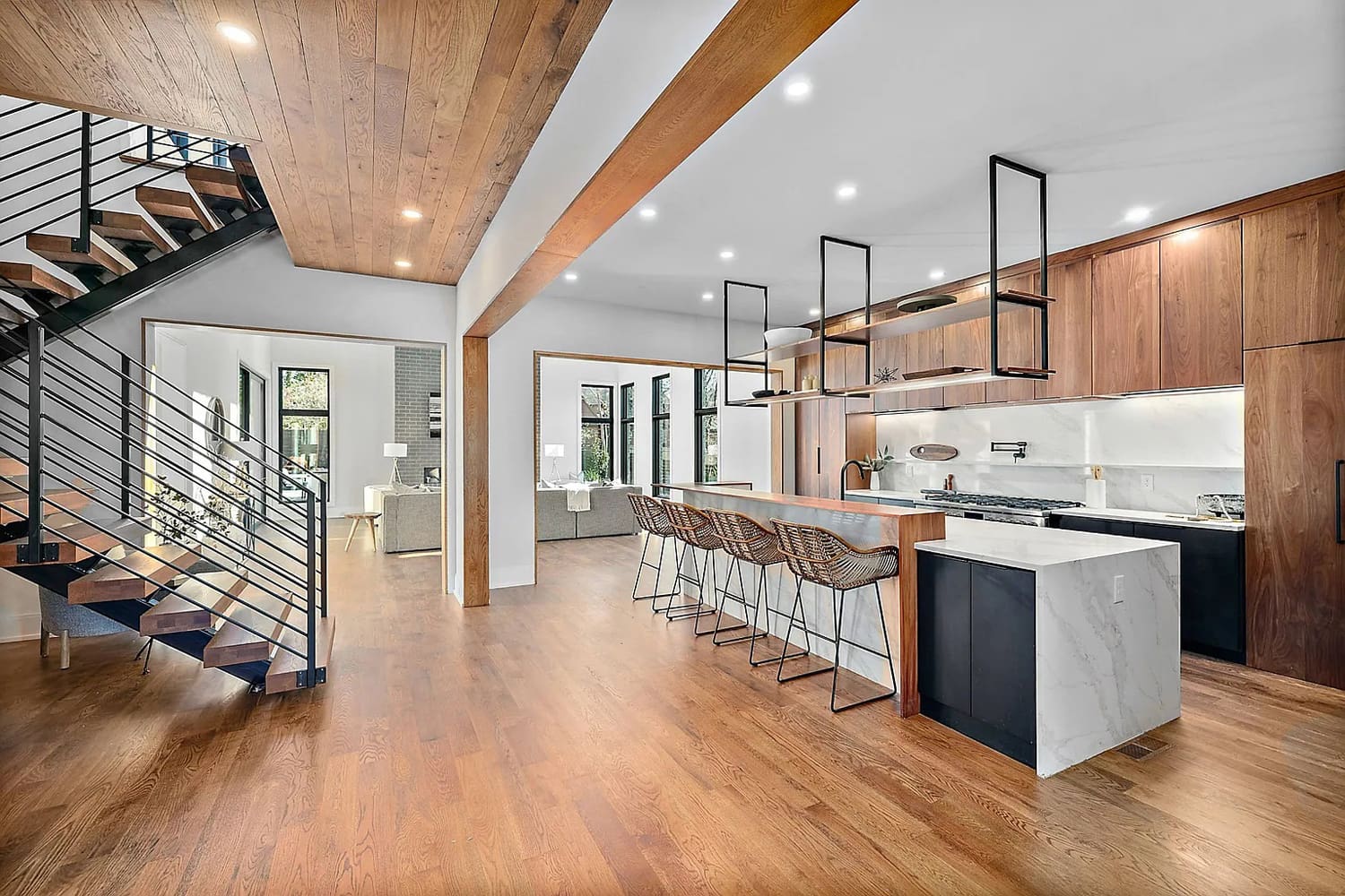 Sleek and modern custom home with a cohesive design from interior to exterior.
