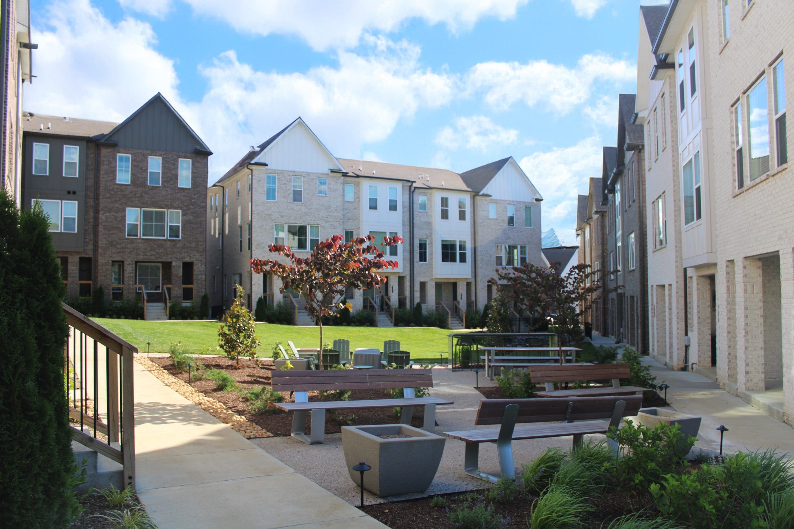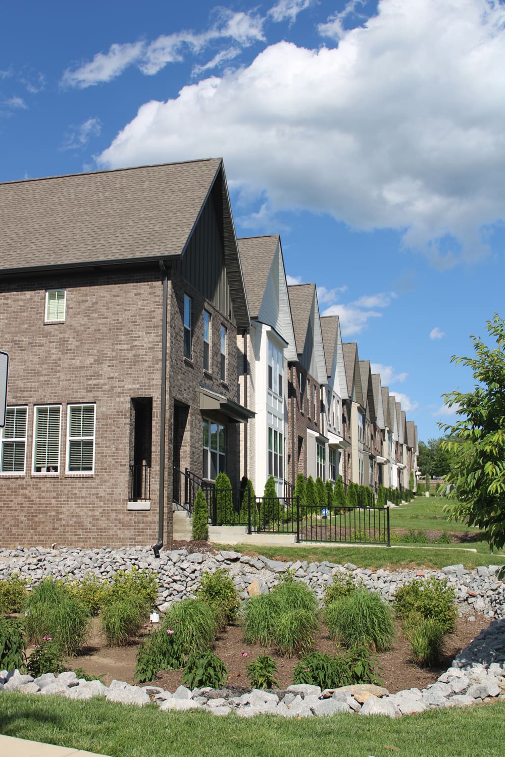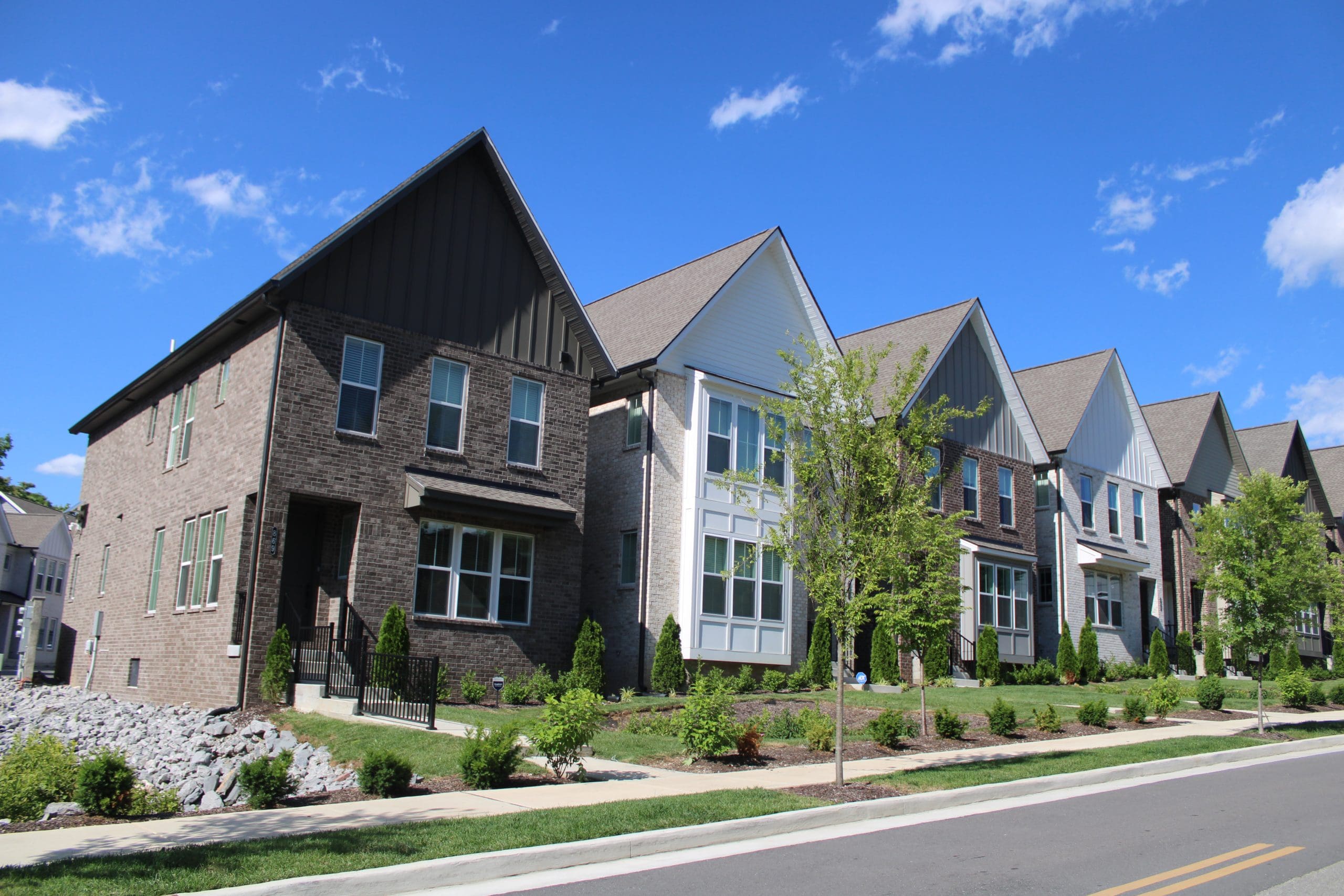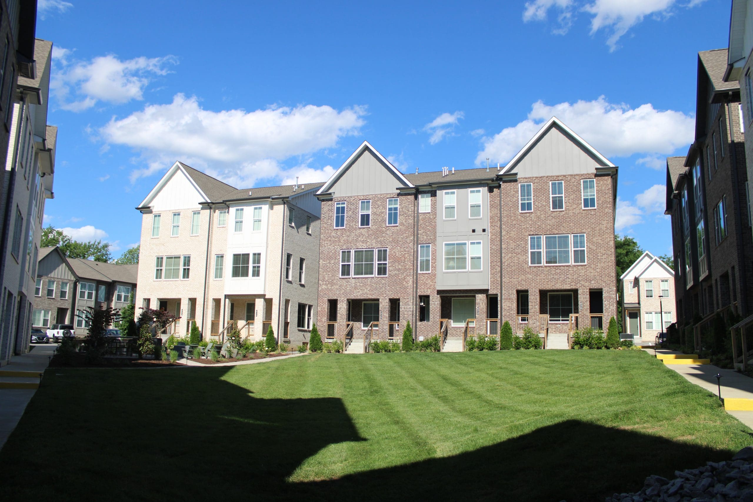 Six unique unit plans ranging from 1,200 to 2,200 square feet allow flexibility for multiple buyer types while supporting a cohesive design. Each building varies in massing and detail, using a shared palette of brick, pitched roofs, bay windows, and front stoops to reference Nashville’s historic inner-ring suburbs with a fresh, scalable identity.