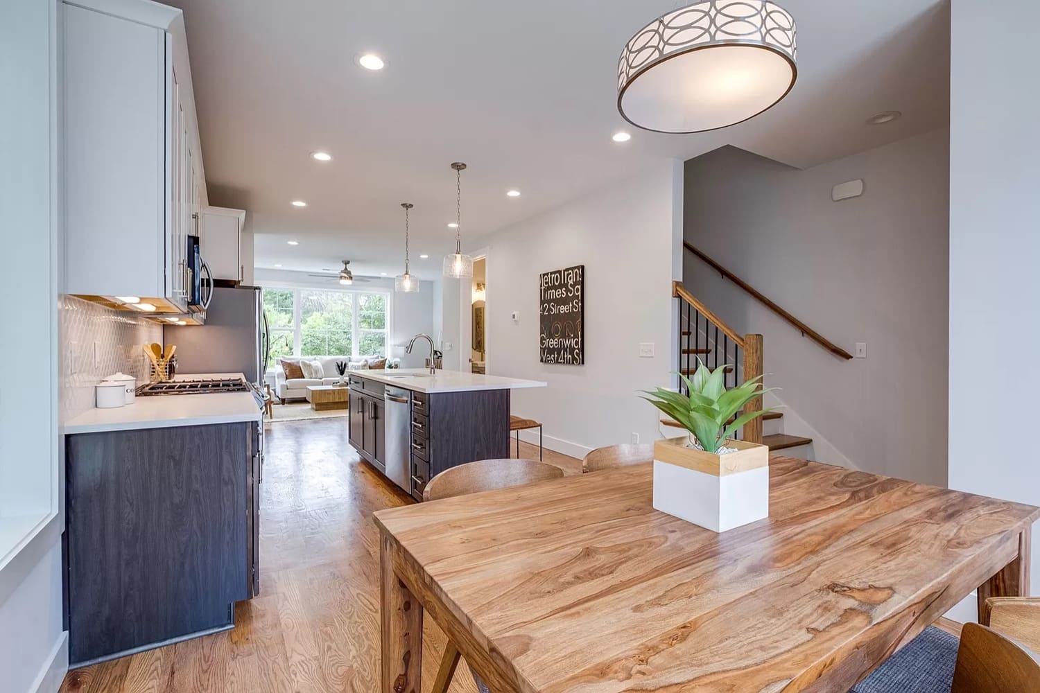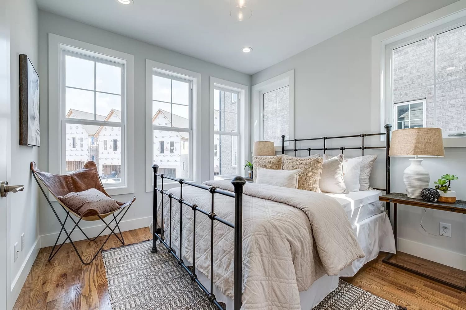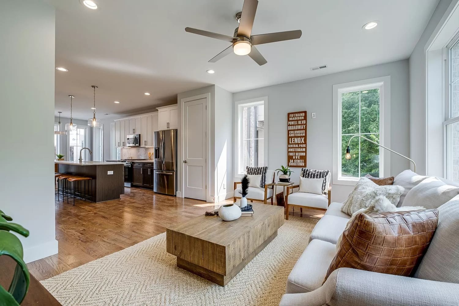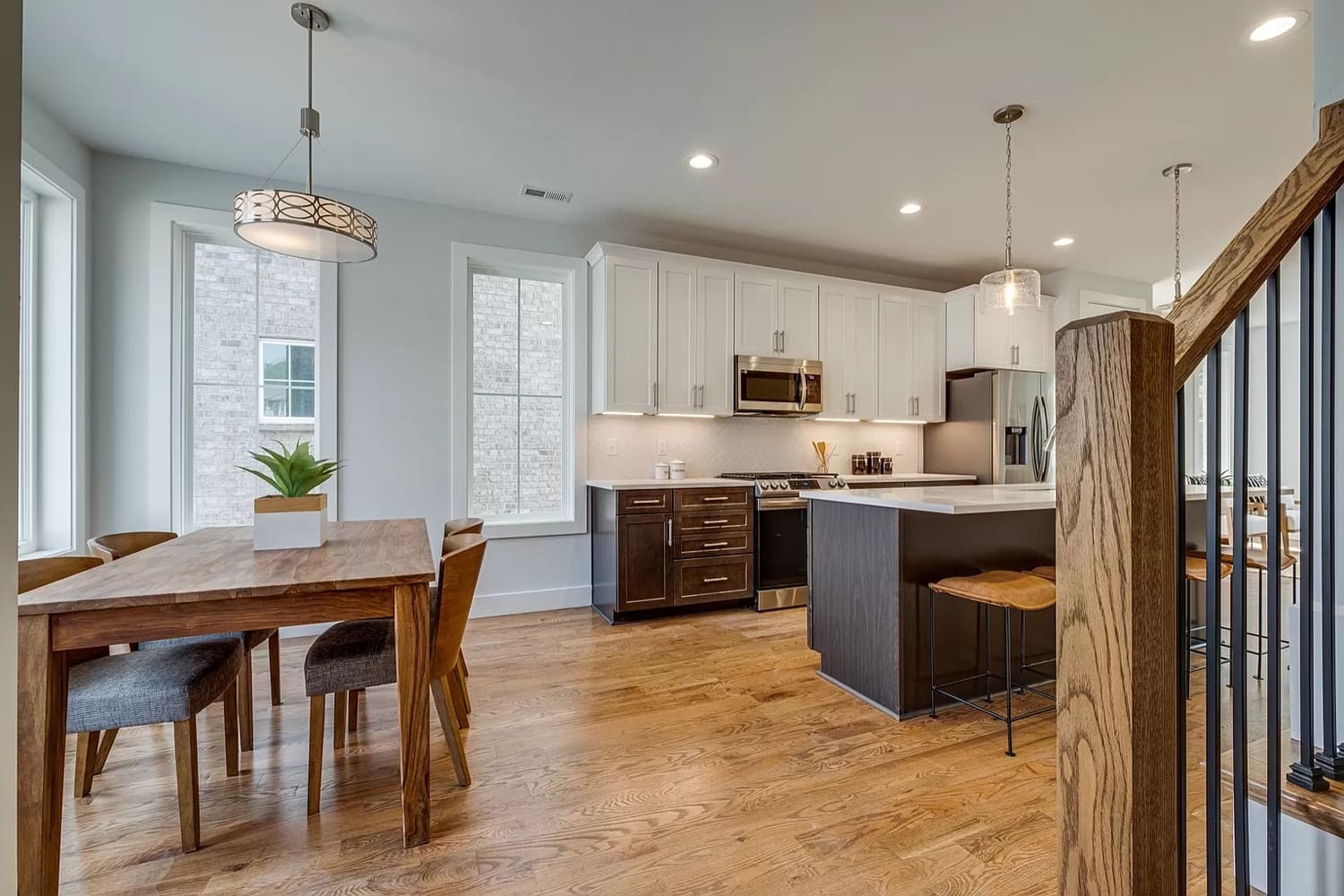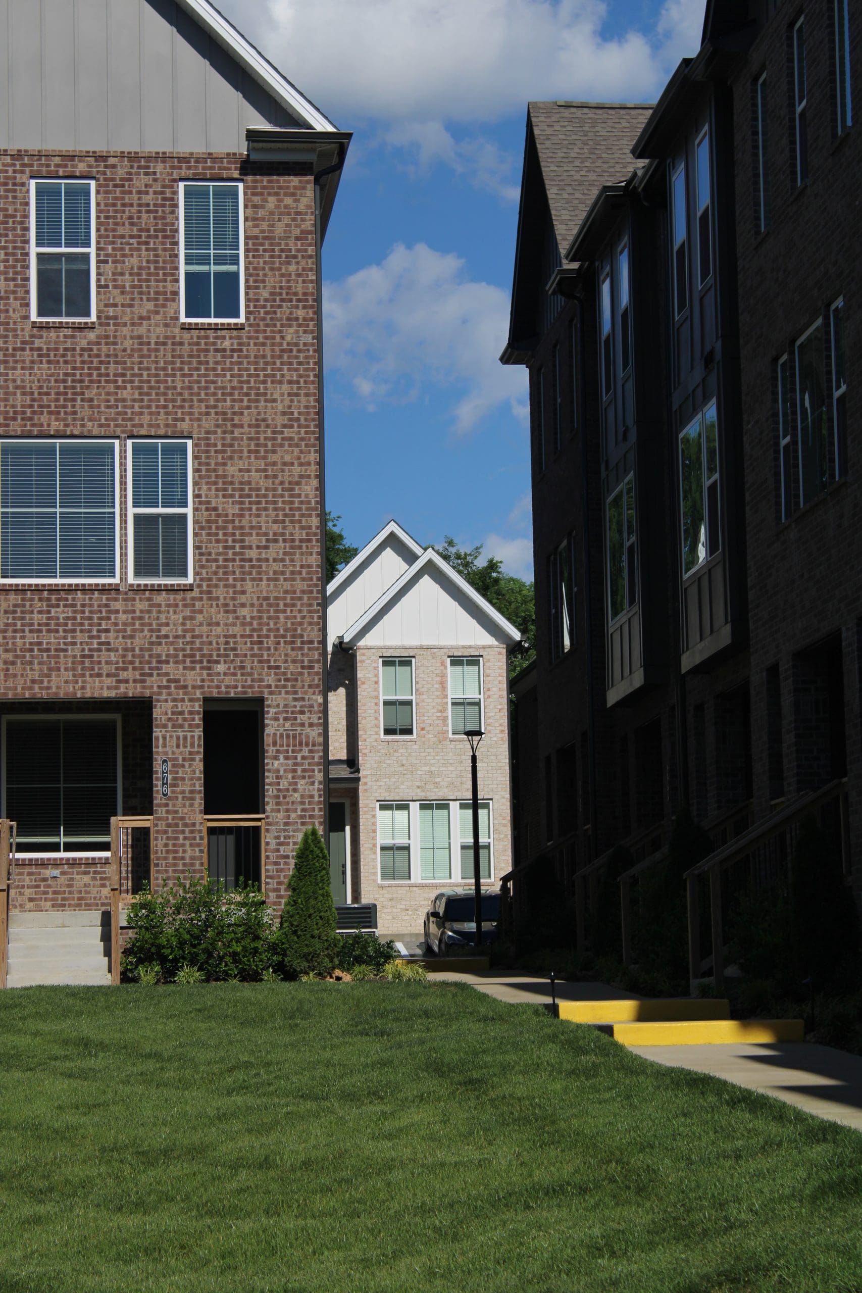 Six unique unit plans ranging from 1,200 to 2,200 square feet allow flexibility for multiple buyer types while supporting a cohesive design. Each building varies in massing and detail, using a shared palette of brick, pitched roofs, bay windows, and front stoops to reference Nashville’s historic inner-ring suburbs with a fresh, scalable identity.