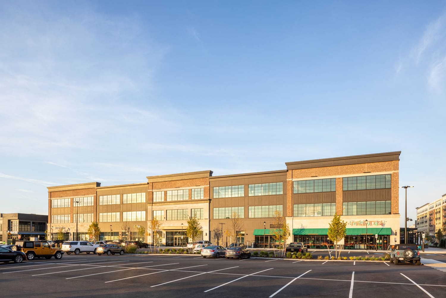 At the center of the Tuscan Village development, this mixed-use building includes commercial office, retail, and restaurant space.